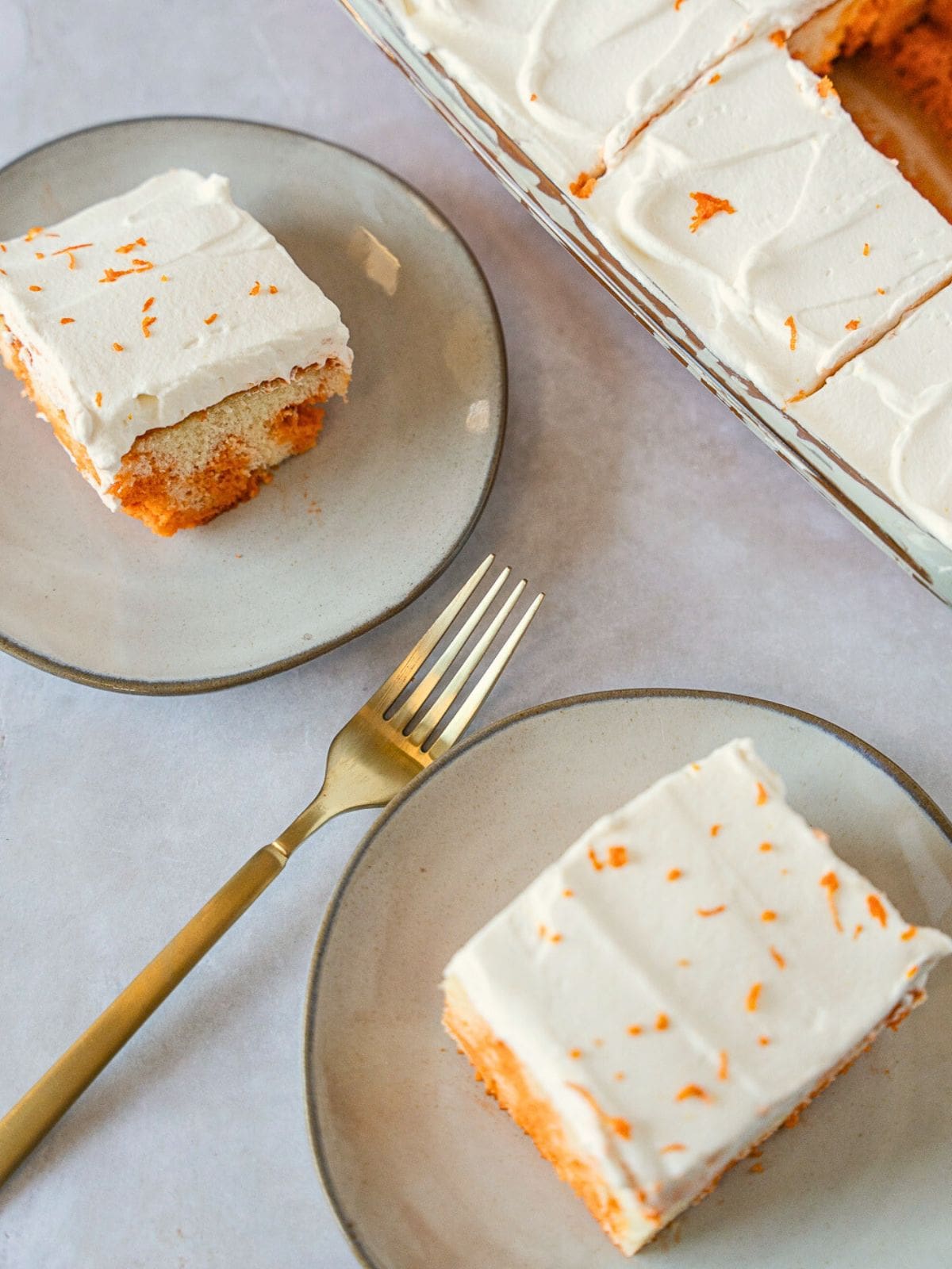 - Remove the cake from the refrigerator and spread the whipped cream evenly. Garnish the cake with orange zest (optional), then slice and serve.